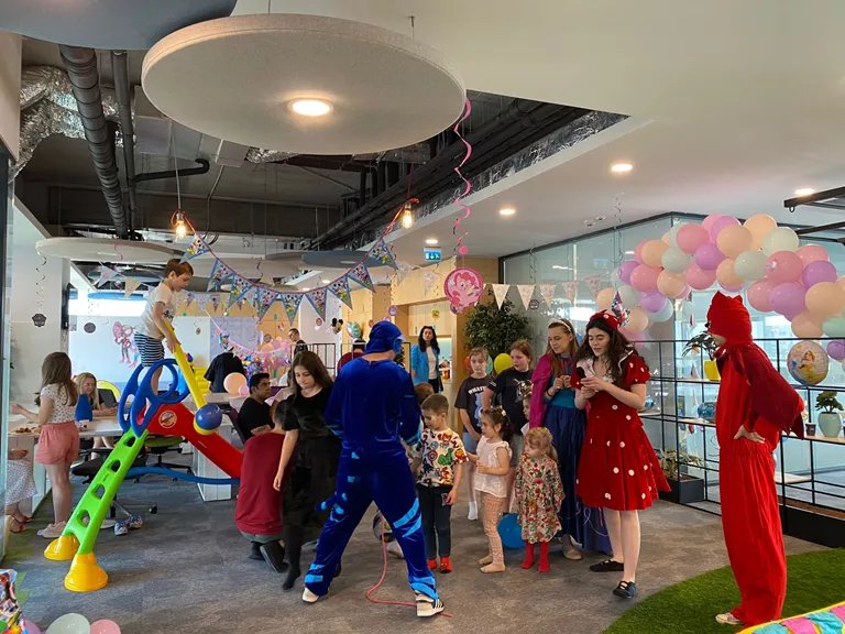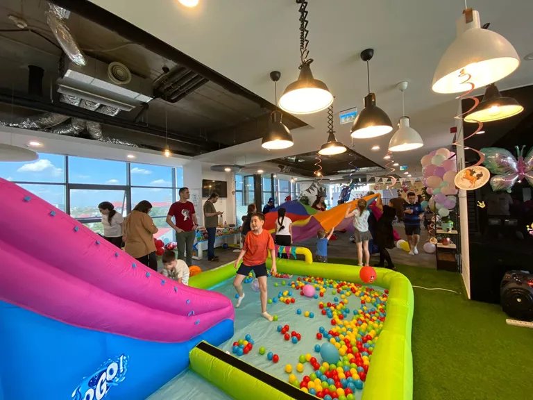 We kicked off the celebration by transforming the entire office into a real-life playground. The typically professional setting became a wonderland filled with colorful decorations, toys, and games. The highlight of the day was undoubtedly the bouncy castle, which quickly became a favorite among the kids.
